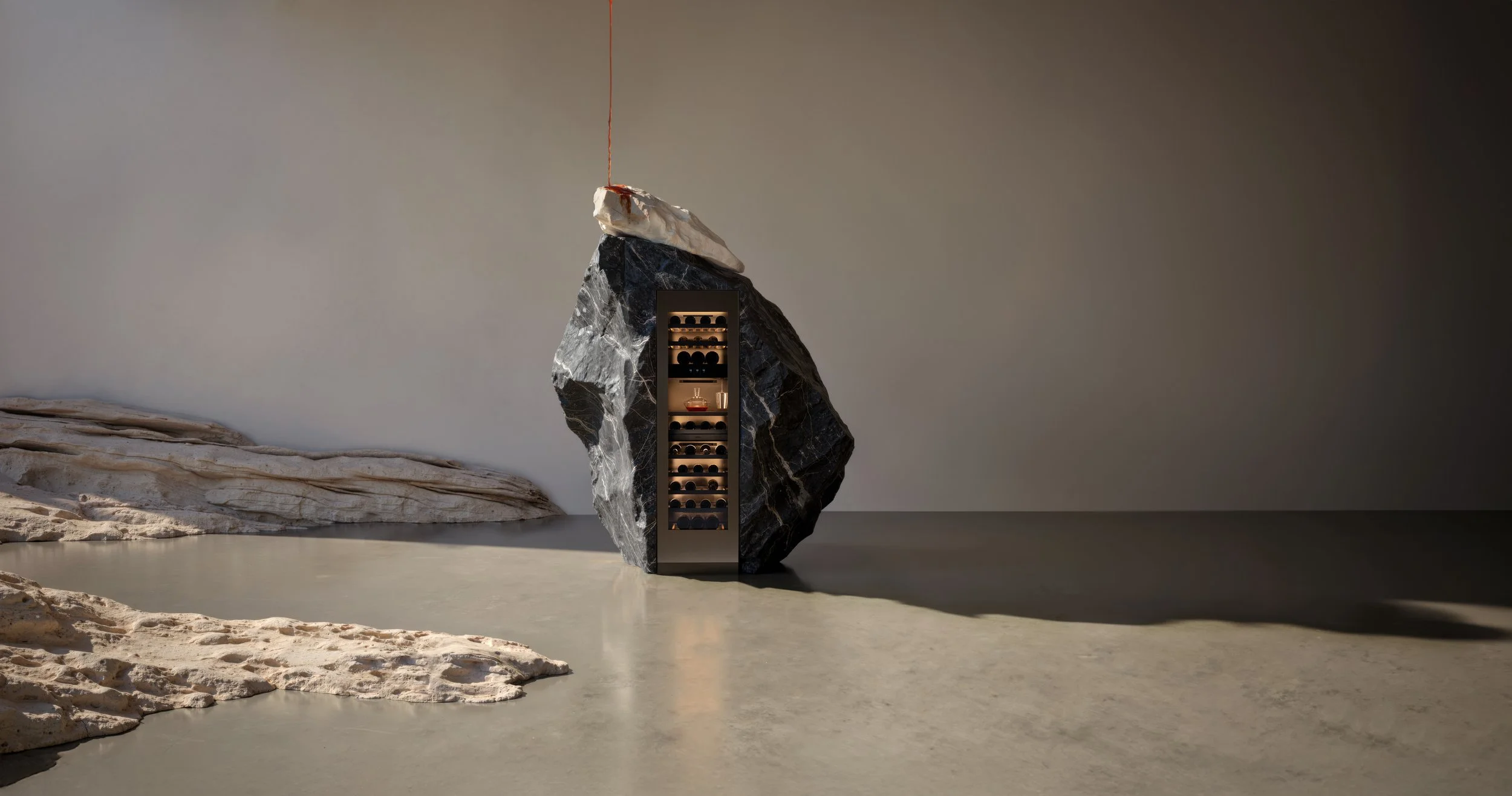 Wine is elegance — in its heritage, its craft, its shades and depth. So serving it should feel just as meaningful. This product launch introduces a new generation of wine climate cabinets: sleek design, avant-garde technology and automated tempering programs that elevate every bottle into a ritual. At the heart: a sculptural art piece merging cabinet, stone and flowing liquid — turning wine tempering into a composition of form, function and sensory beauty.
